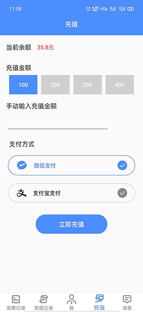 2.對(duì)于充值金額,用戶可以手動(dòng)輸入金額,也可以選擇如界面上的100、200、300、400的額度進(jìn)行充值。