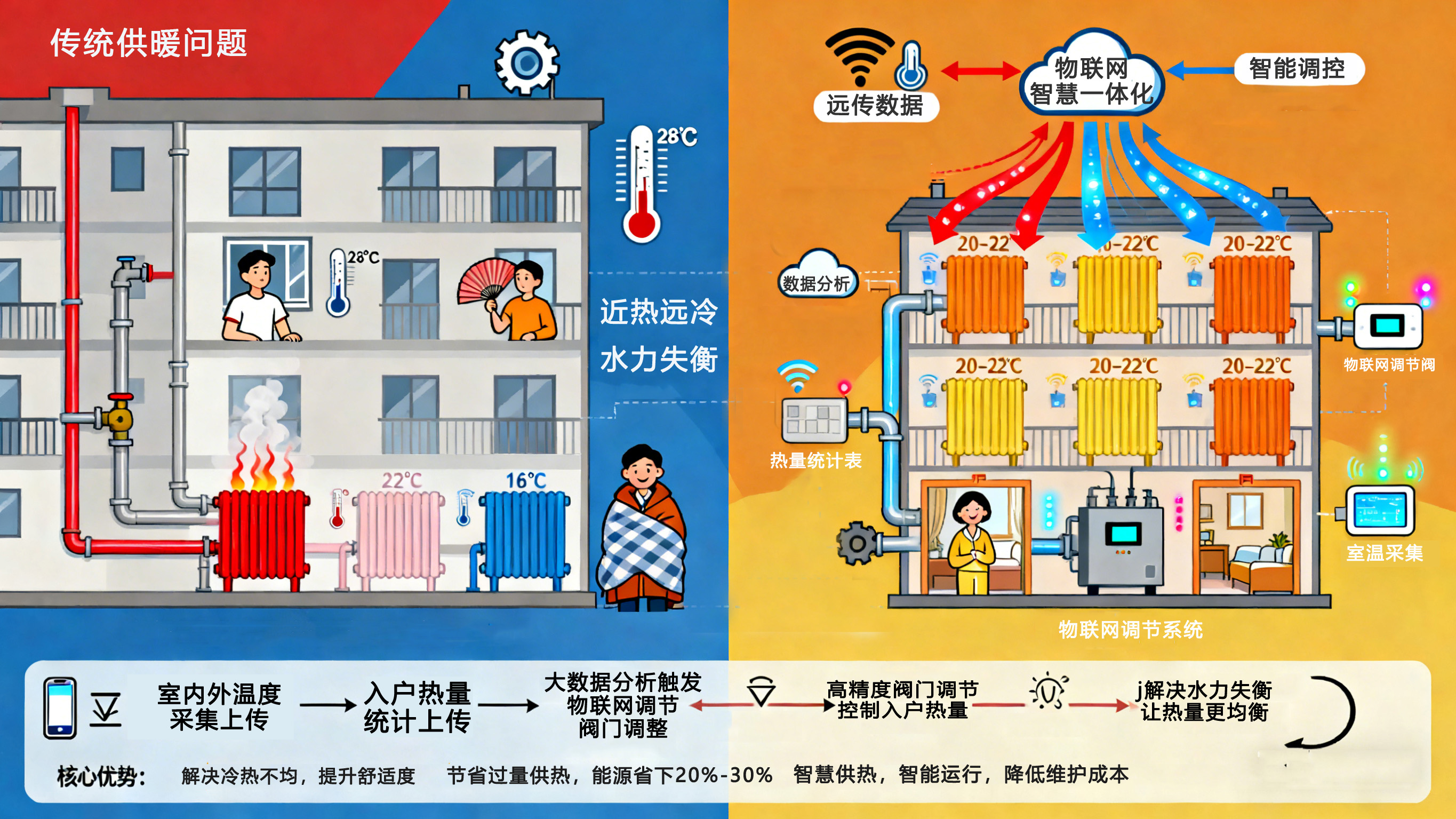 按需供熱:根據(jù)實(shí)際需求分配熱量,避免"過(guò)熱開(kāi)窗"的浪費(fèi)現(xiàn)象